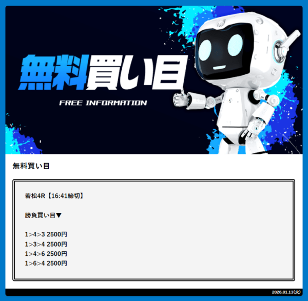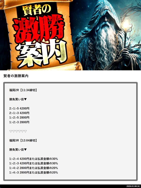 - 2026年1月6日に無料予想で24,250円の的中!