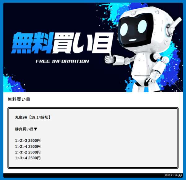 - 2025年11月11日に無料予想で25,500円の的中!