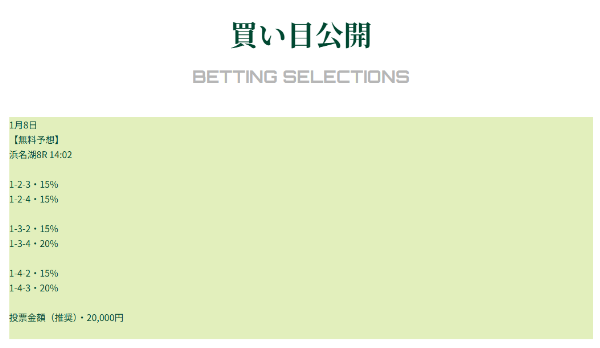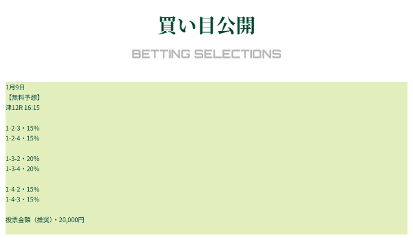 また、予想の根拠が書かれていないので、予想の根拠を重視したい方には向いていないな。