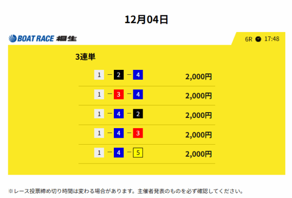 そうしたら、いきなり万舟券が的中しました。