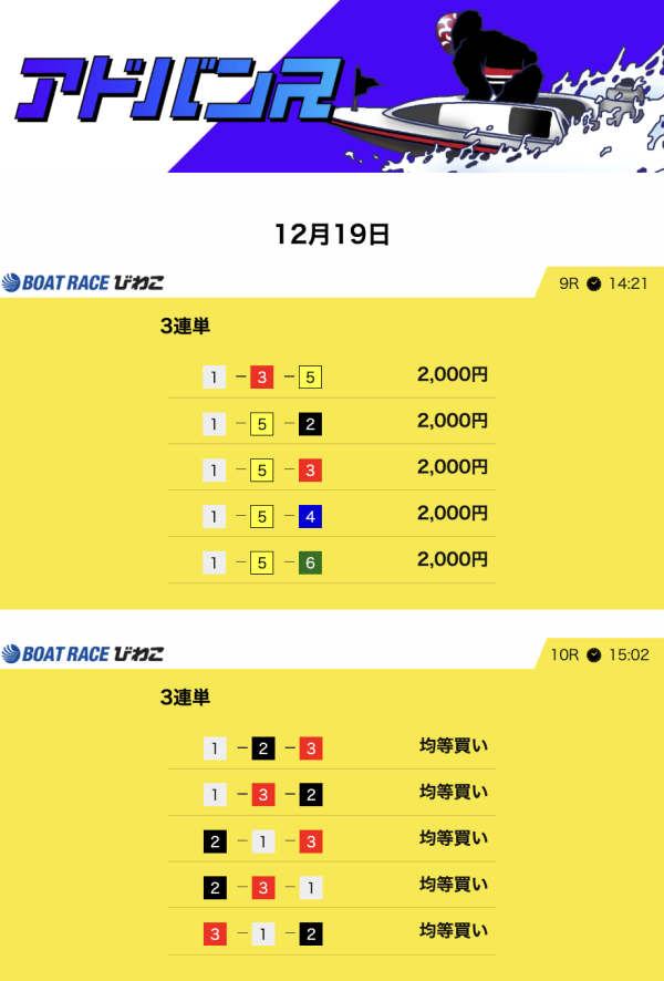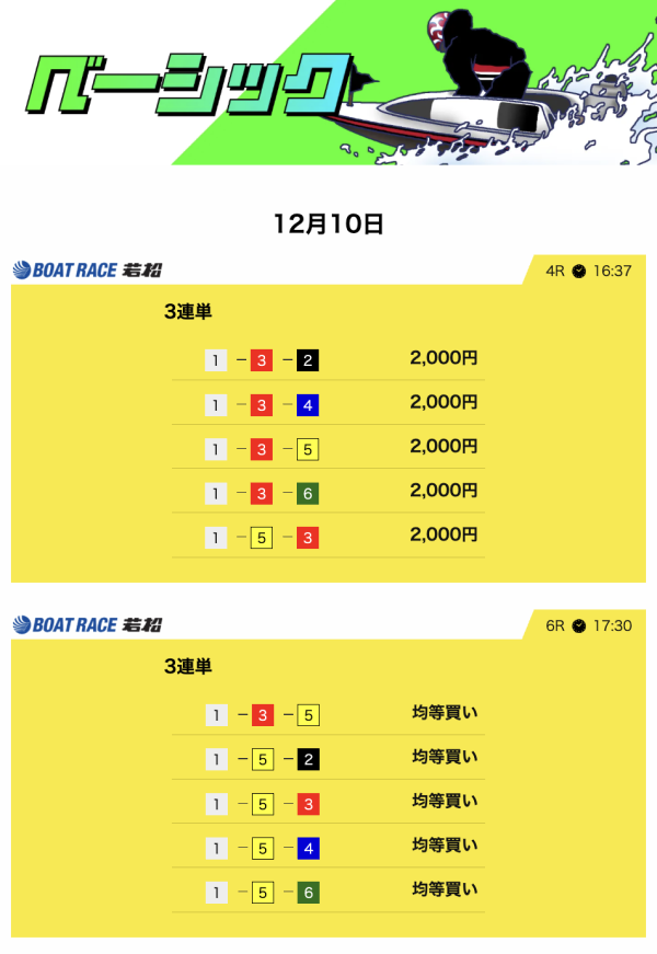 毎日2レース分の買い目を公開