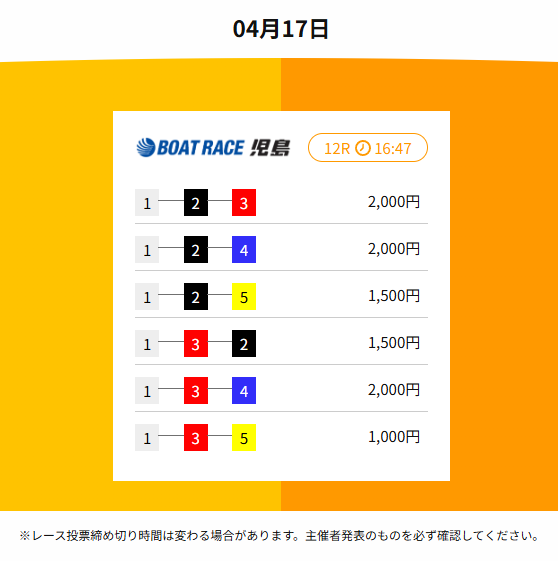 | 2026年4月17日 | 無料予想 | 16,000円 |