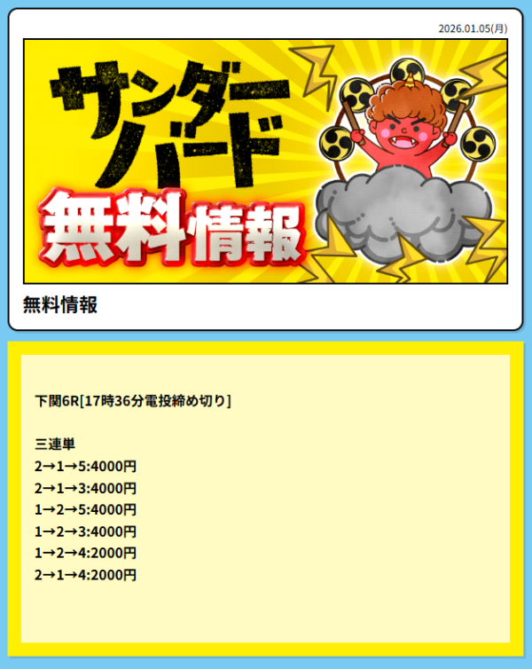 - 2026年1月5日に無料予想で31,200円の的中!