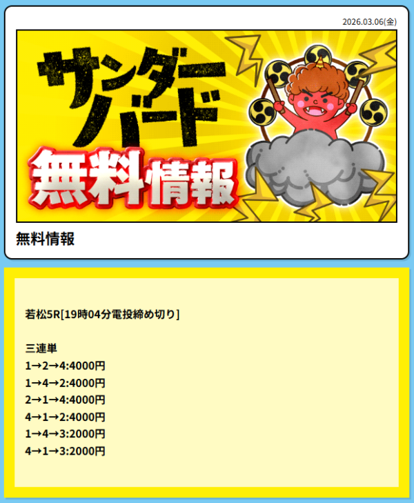 - 2026年3月6日に無料予想で16,400円の的中!