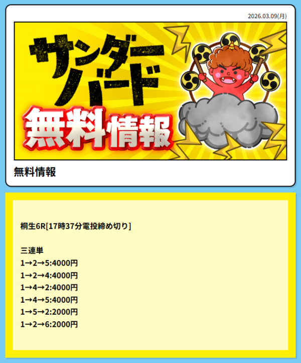 - 2026年3月5日に無料予想で12,800円の的中!