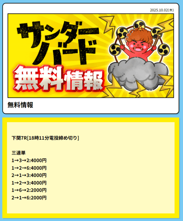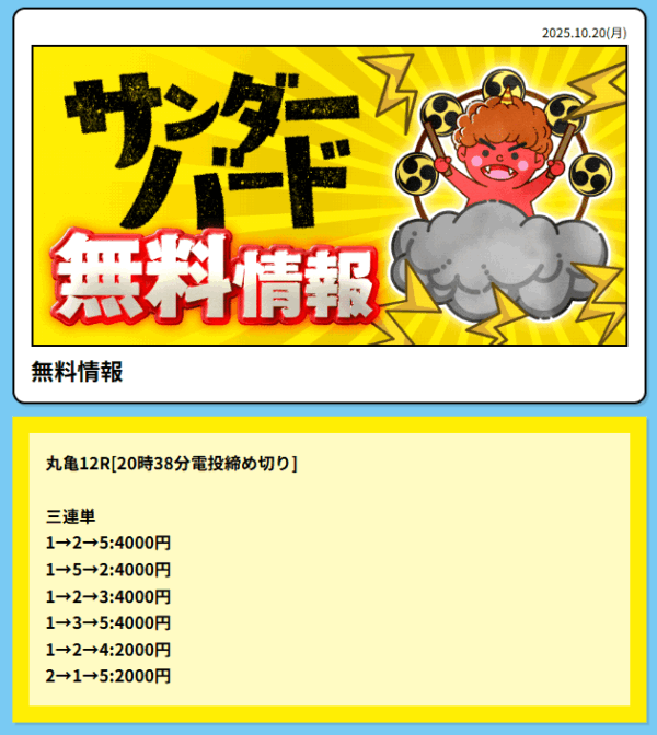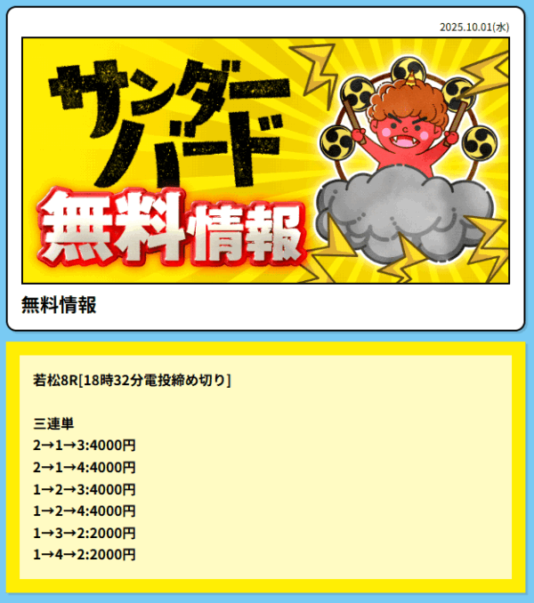 競艇予想サイトの競艇サンダーバードが悪質で当たらないのか、口コミや無料予想を辛口検証した。