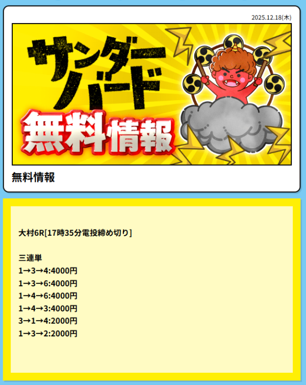 単発3レースの買い目が提供されるので、舟券をあらかじめ買っておけるのは使いやすいぞ。