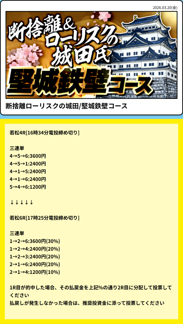 - 2026年3月20日に無料予想で16,000円の的中!