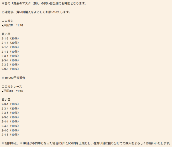 | 2025年10月31日 | 無料予想 | 21,100円 |