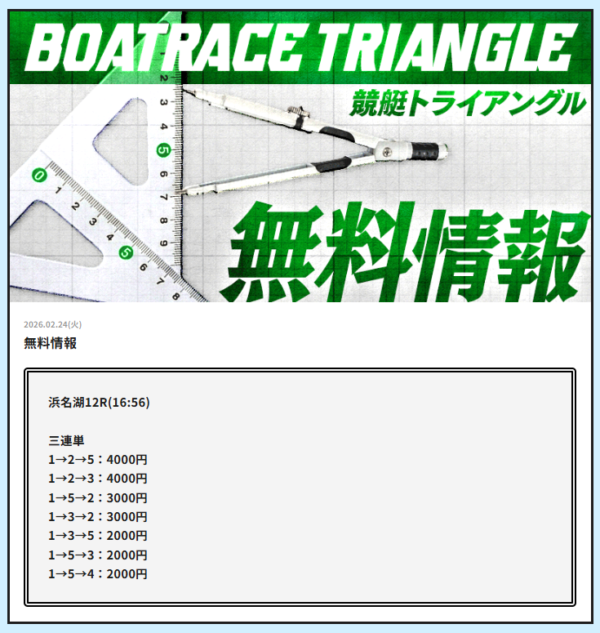 - 競艇トライアングルの無料予想