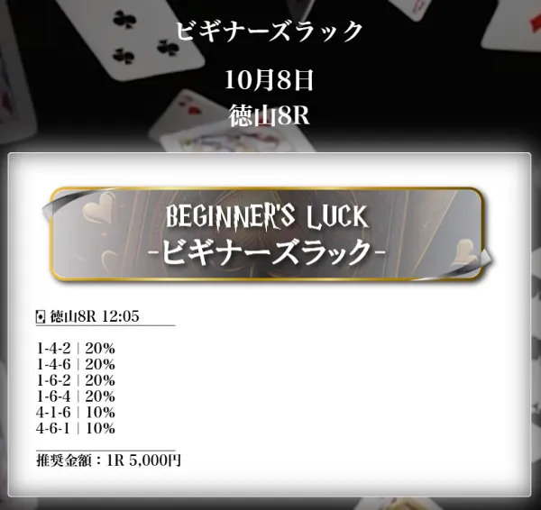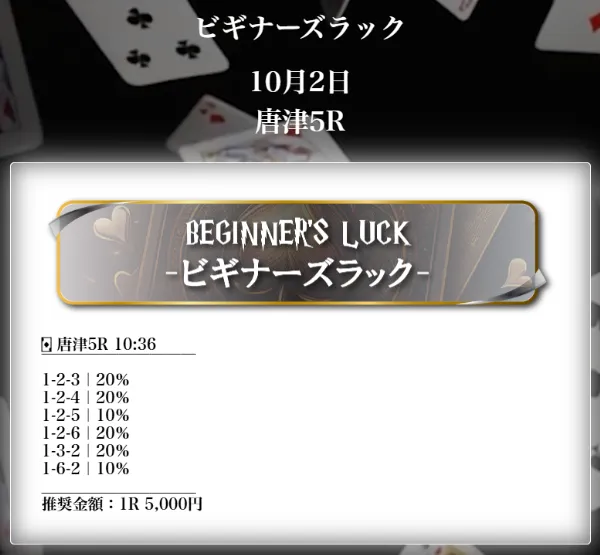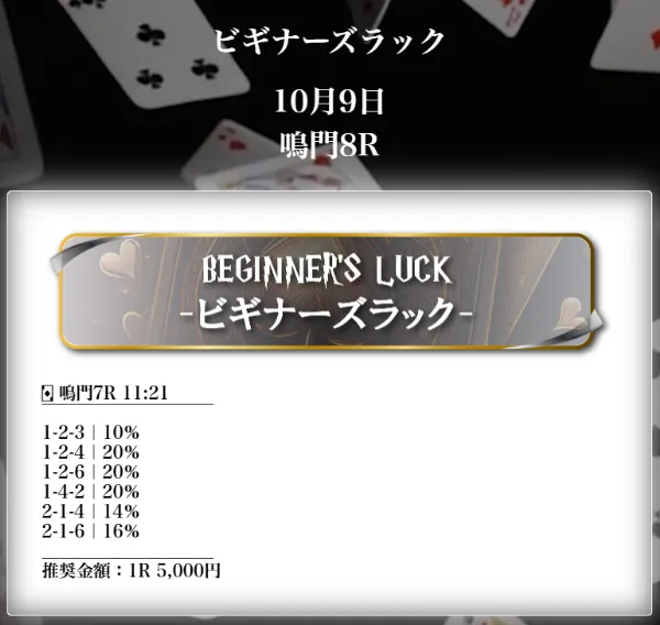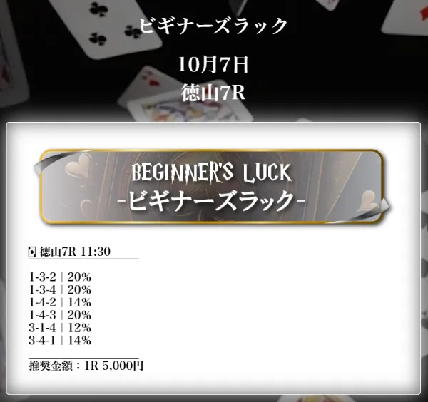 ナイトセブンは、1レース単発で10万円を狙う配当特化のお試しプランらしいぞ。