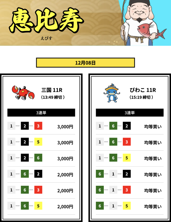 | 2025年12月8日 | 無料予想 | 11,200円 |
