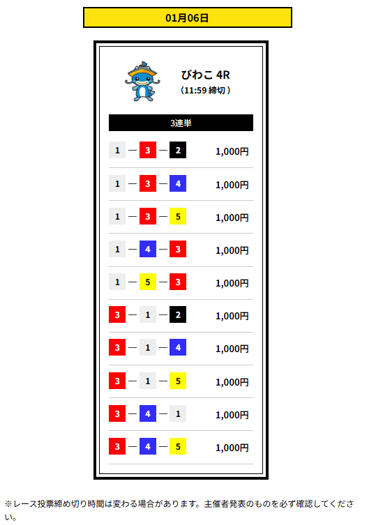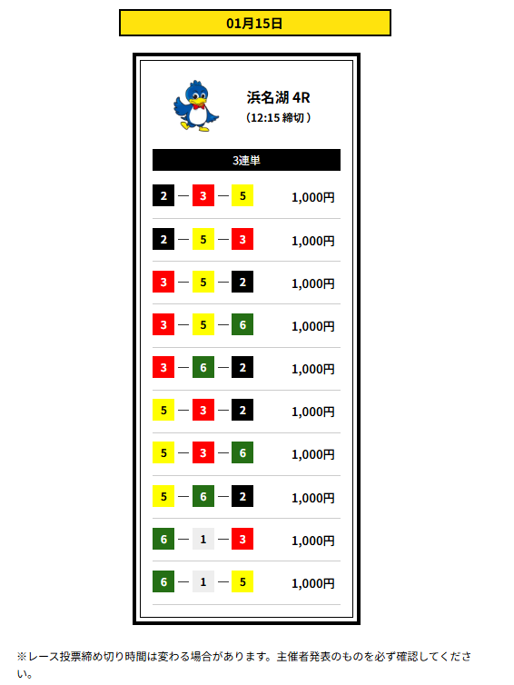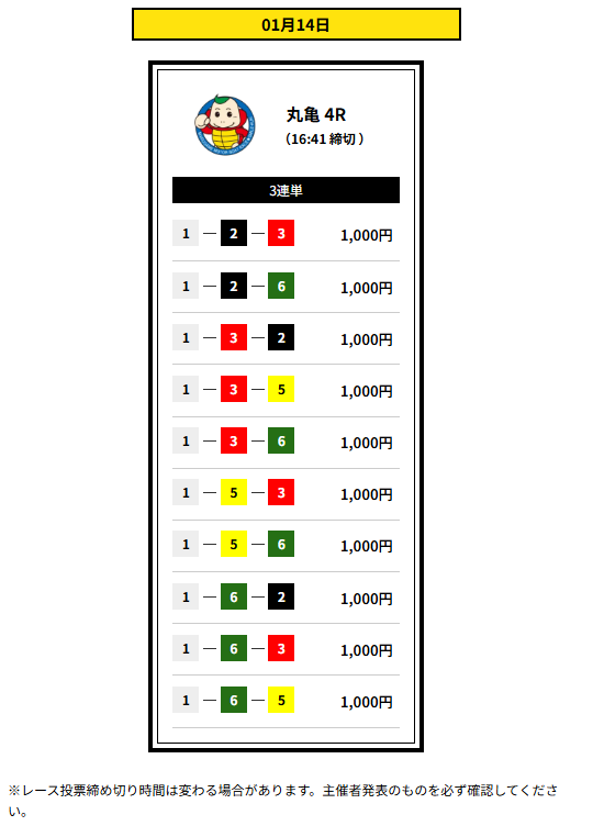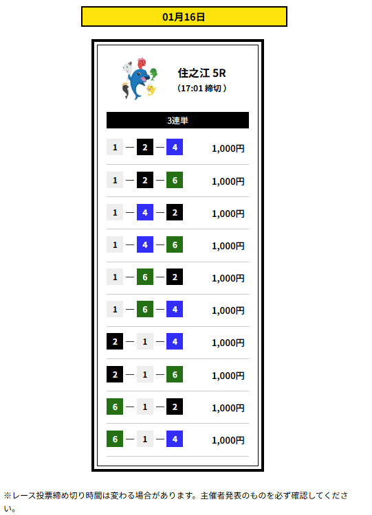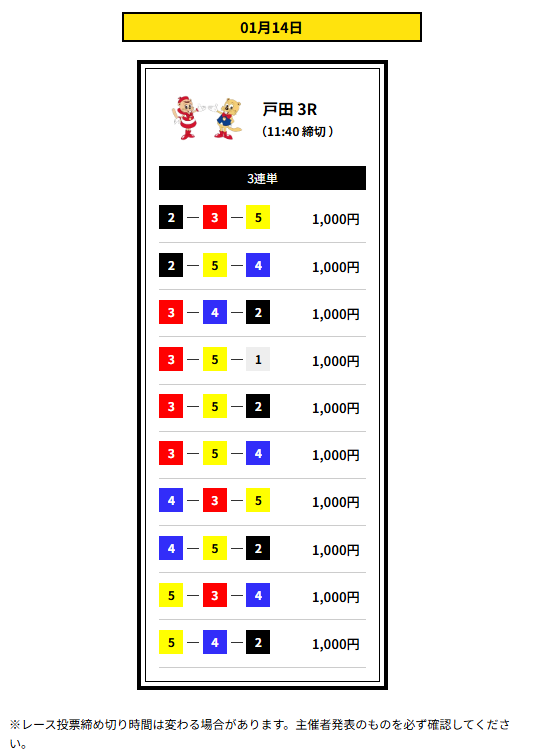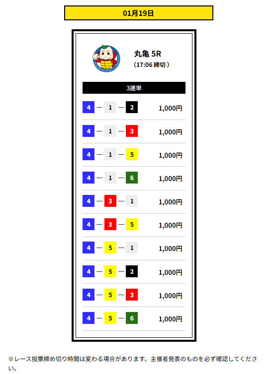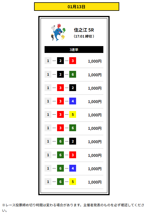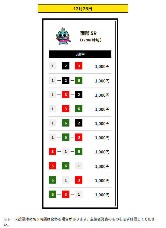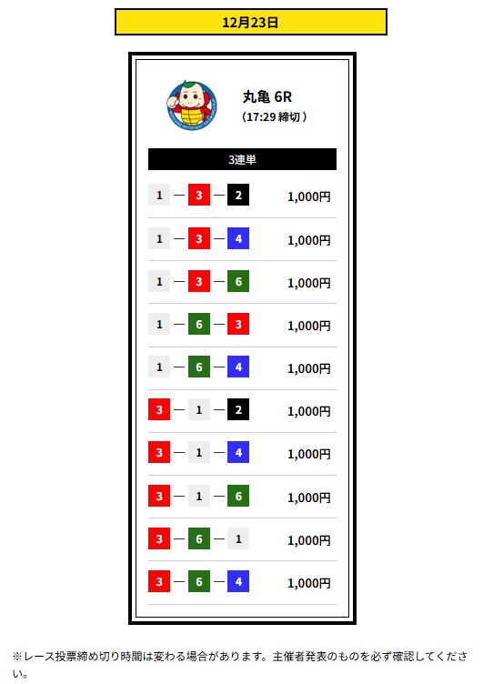 | 締め切り時間 | デイ 12:30 ナイター16:30 |