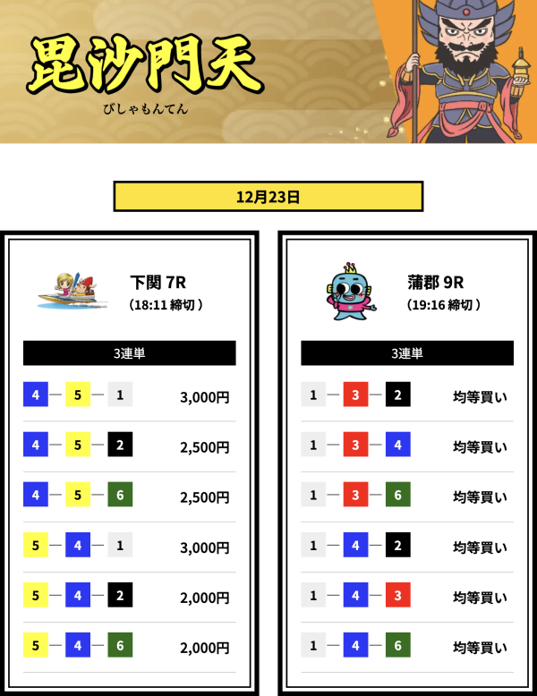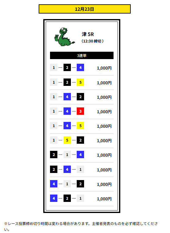 | 2025年12月23日 | 無料予想 | 5,200円 |