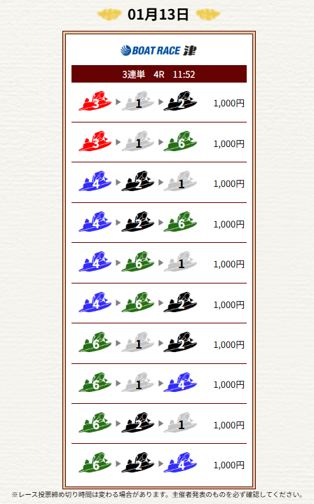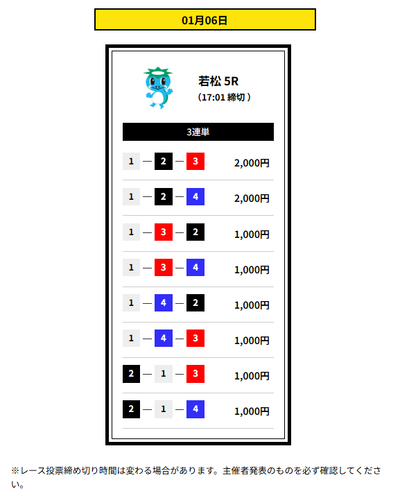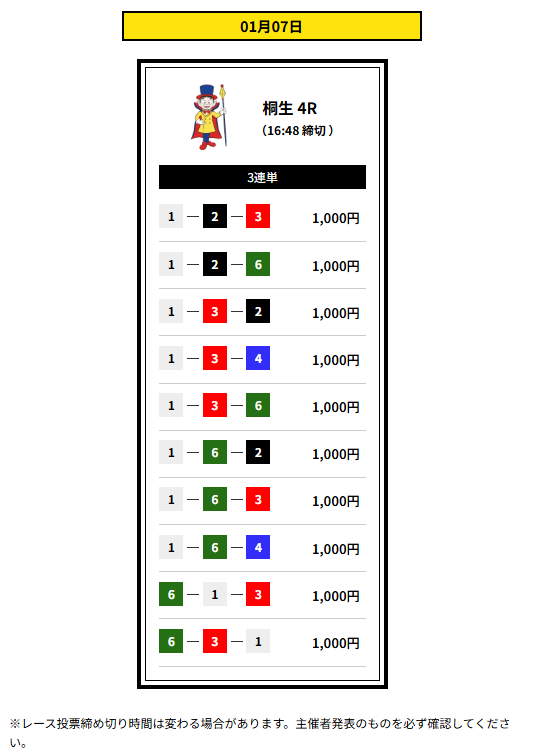 | 2026年1月6日 | 無料予想 | 10,000円 |