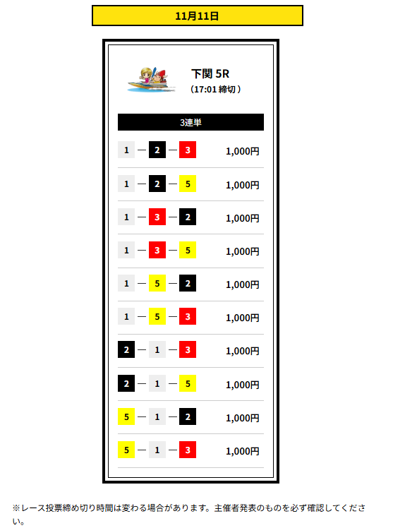 | 締め切り時間 | デイ 12:30 ナイター16:30 |