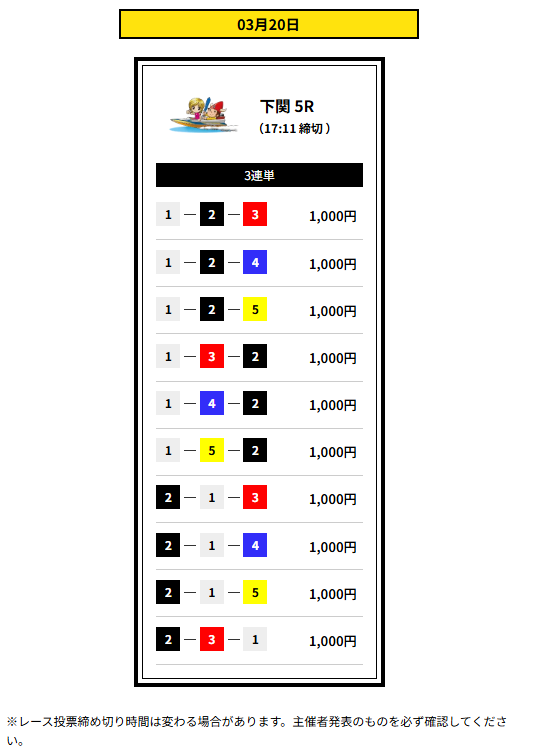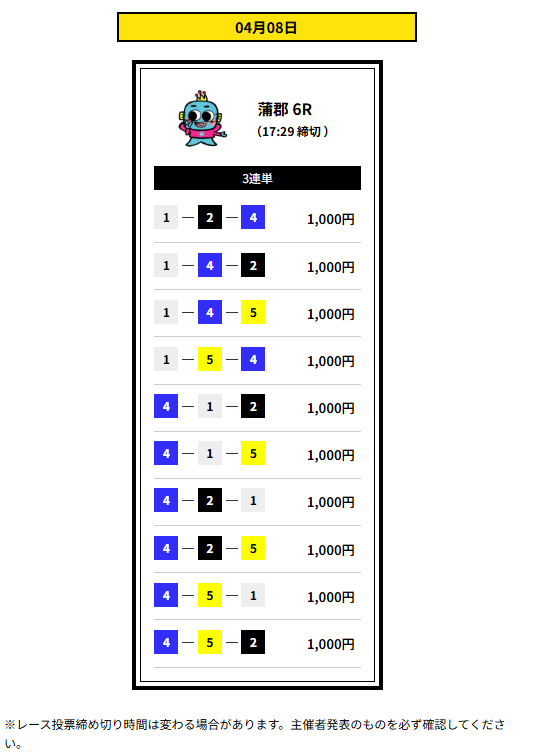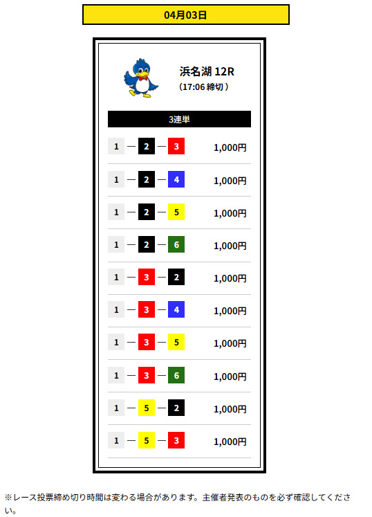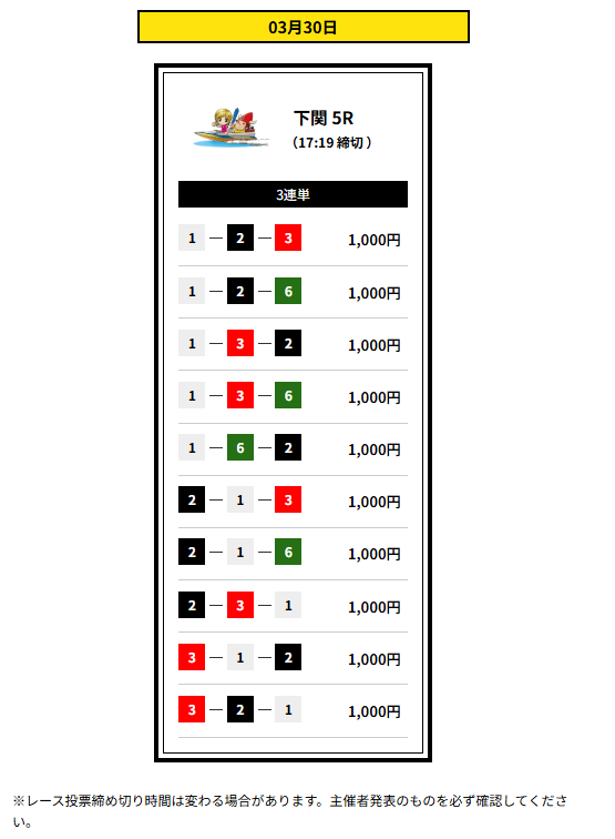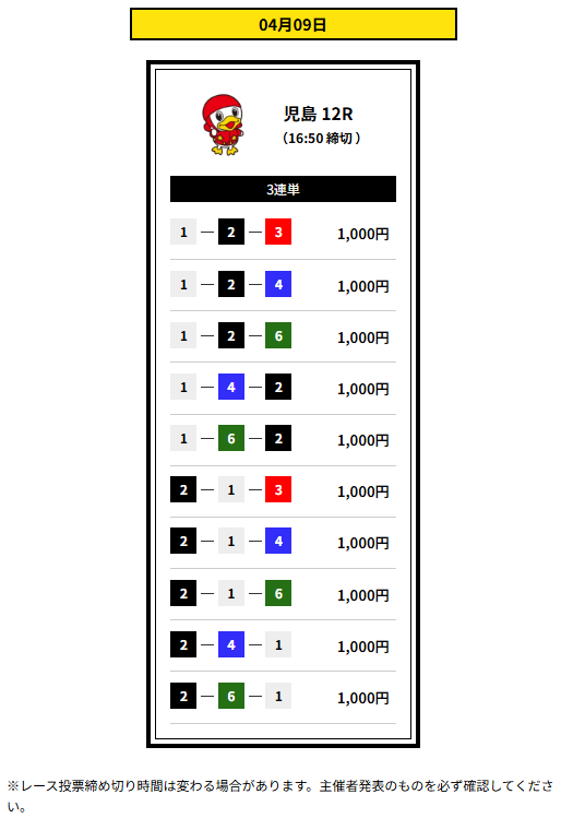 | 提供レース数 | 3連単1レース |