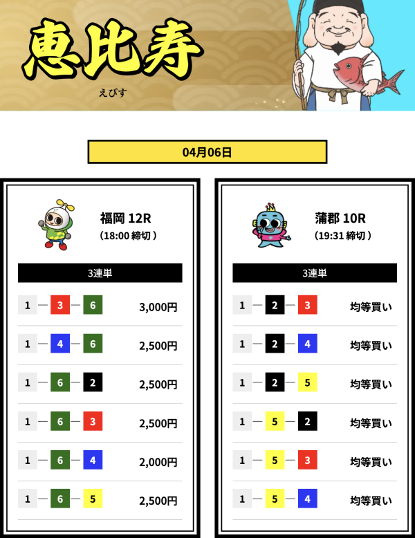 | 2026年4月6日 | 無料予想 | 28,400円 |