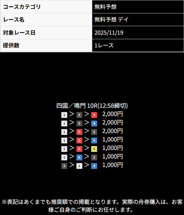 この場合は、艇閃は有料予想が売れずに閉鎖するため、有料級の無料予想は怪しいと感じたぞ。