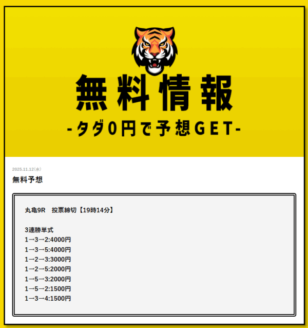 | 2025年11月11日 | 無料予想 | 42,000円 |