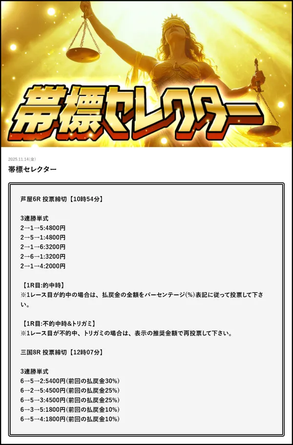 | 2025年11月7日 | 無料予想 | 54,600円 |