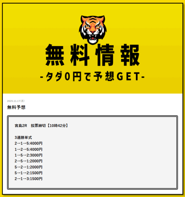 | 2025年11月17日 | 無料予想 | 24,000円 |