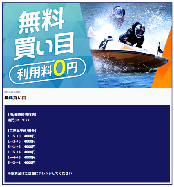競艇予想サイトの今日の無料予想について、平日10時~13時に毎日休まず更新している。