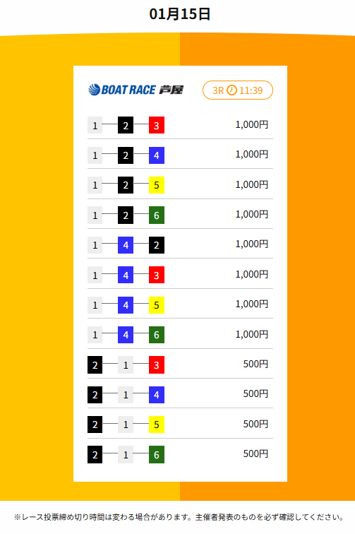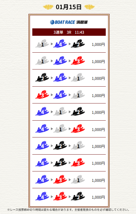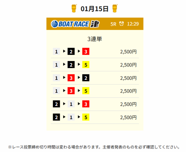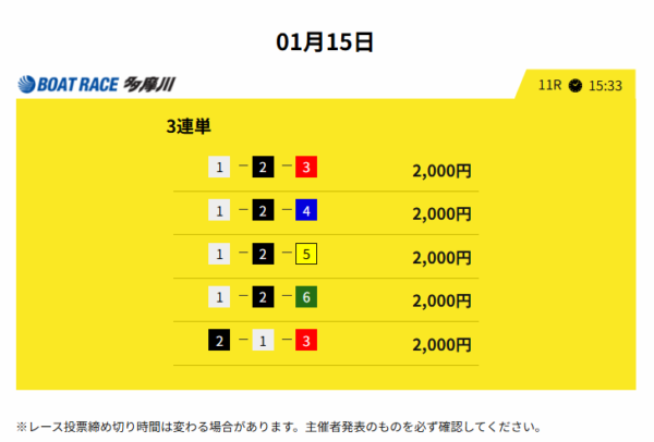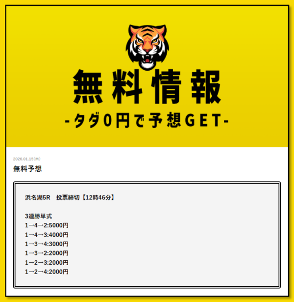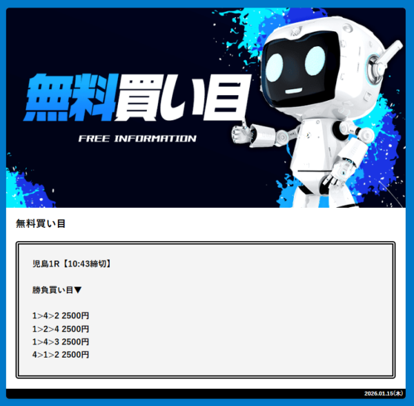 2026年1月15日(木)の無料予想を締切予定時刻が早い順番にまとめたぞ。