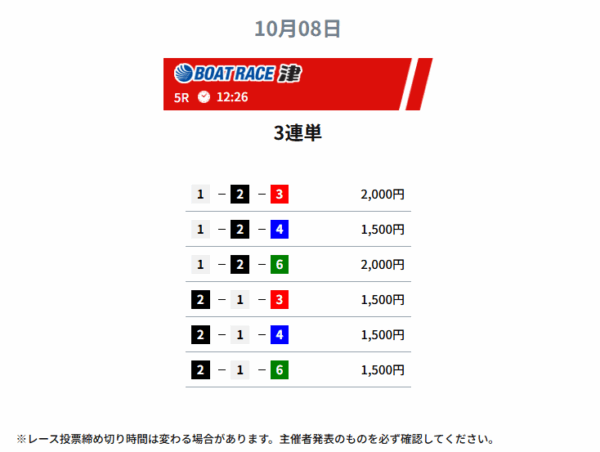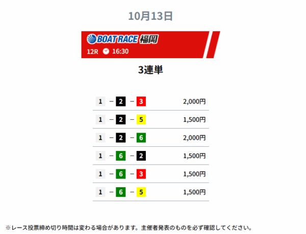 - 2レース目が6点の均等買いなら、2レース目の賭け金は160,000円/6=26666.7円から26,600円