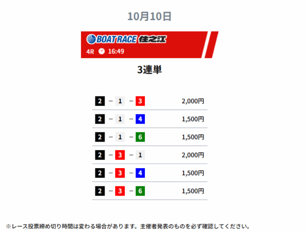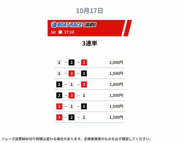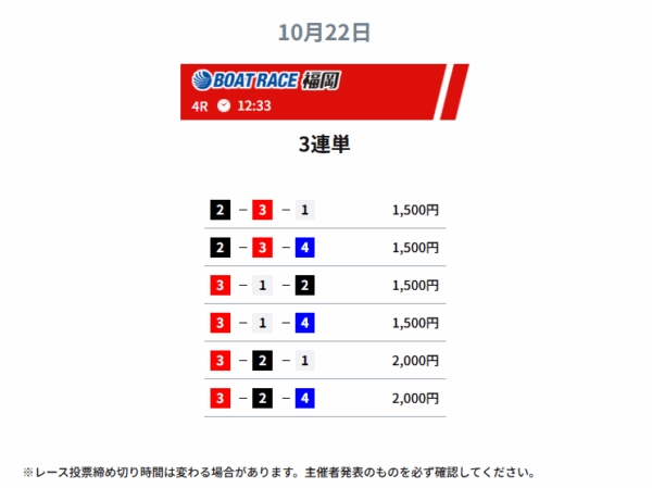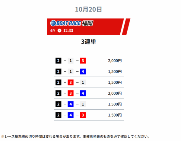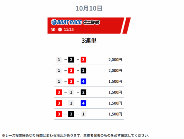 - 2レース目の払戻金は、35,300円×11.2=395,360円で的中実績と一致
