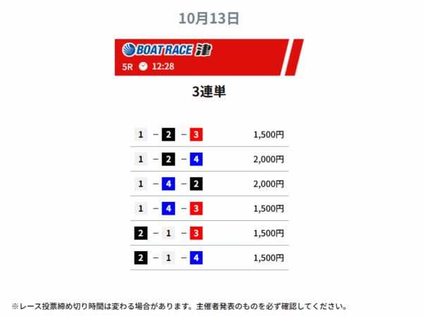 - 2レース目の払戻金は、26,600円×14.0=372,400円で的中実績と一致