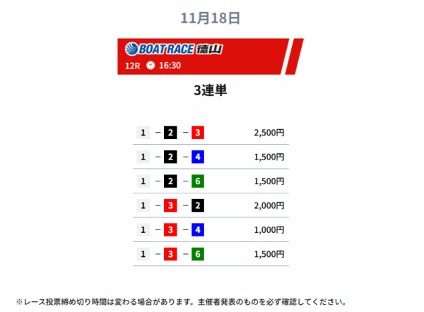 - 2025年11月18日に無料予想で15,250円の的中!