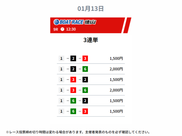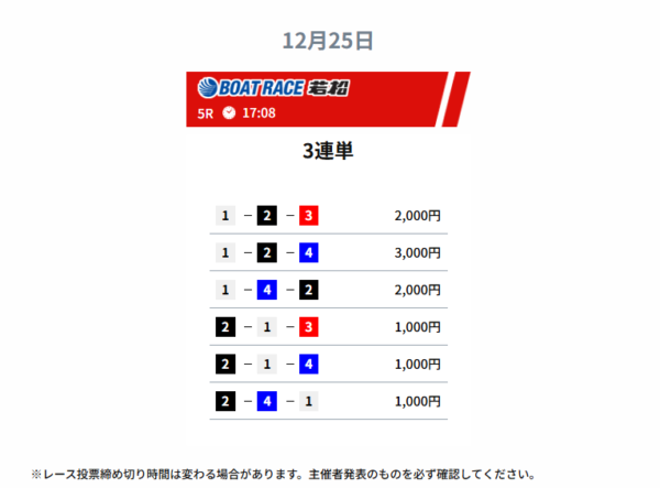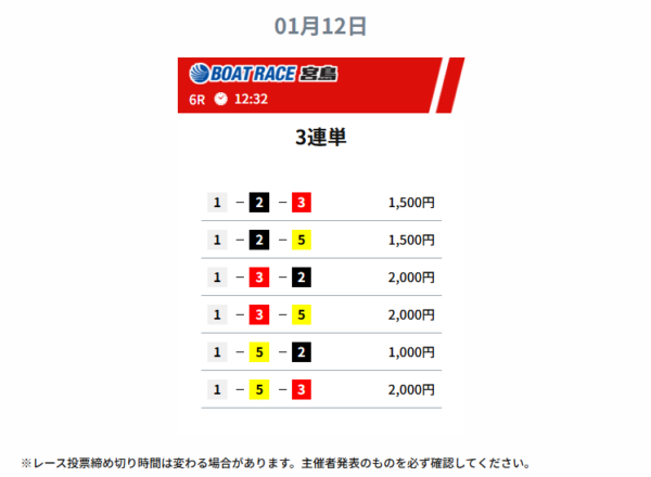 - 2レース目の払戻金は、35,300円×11.2=395,360円で的中実績と一致