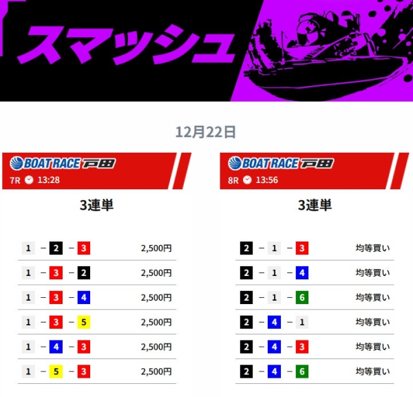 ウルトラボートでは、1レース目の資金配分や2レース目の買い目点数が変わるぞ。